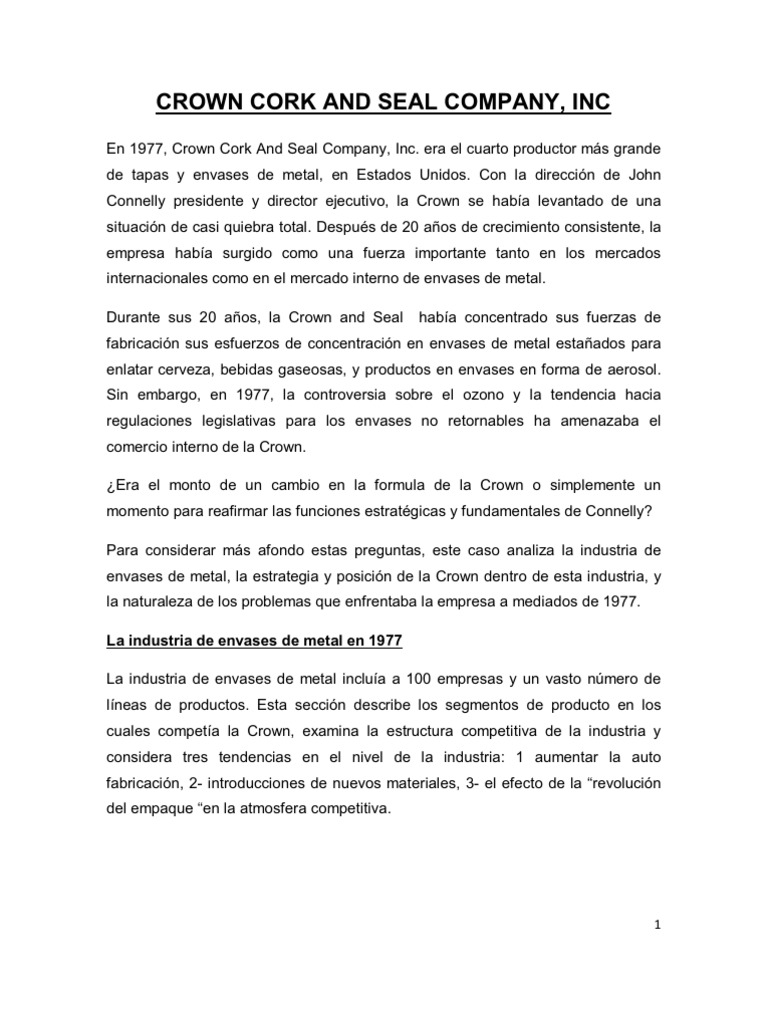 Crown Cork And Seal Company By Nicolas Legelen The essence of its successful strategy focused on having 26 manufacturing plants spread around the.